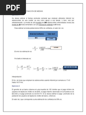 1er P Ejer De Estimacion De Medias B Y Tamano De Muestra Pdf Intervalo De Confianza Determinacion Del Tamano De La Muestra